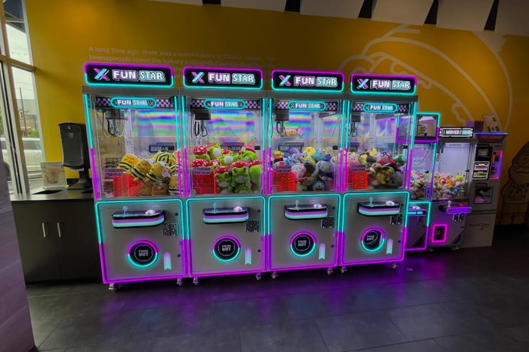 Our Mini Claw Machines are typically 14" wide, 14" diameter, and 65" tall.